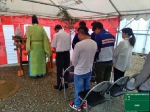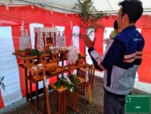 神主さんをお迎えして、神様にお供え物をし、祝詞をあげ、