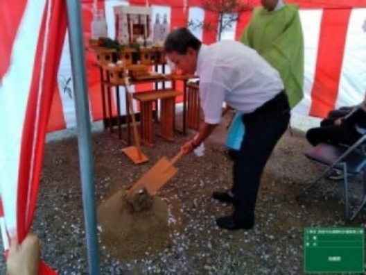お祓いをして浄め、その土地で最初の鍬(くわ)や鋤(すき)を入れ、